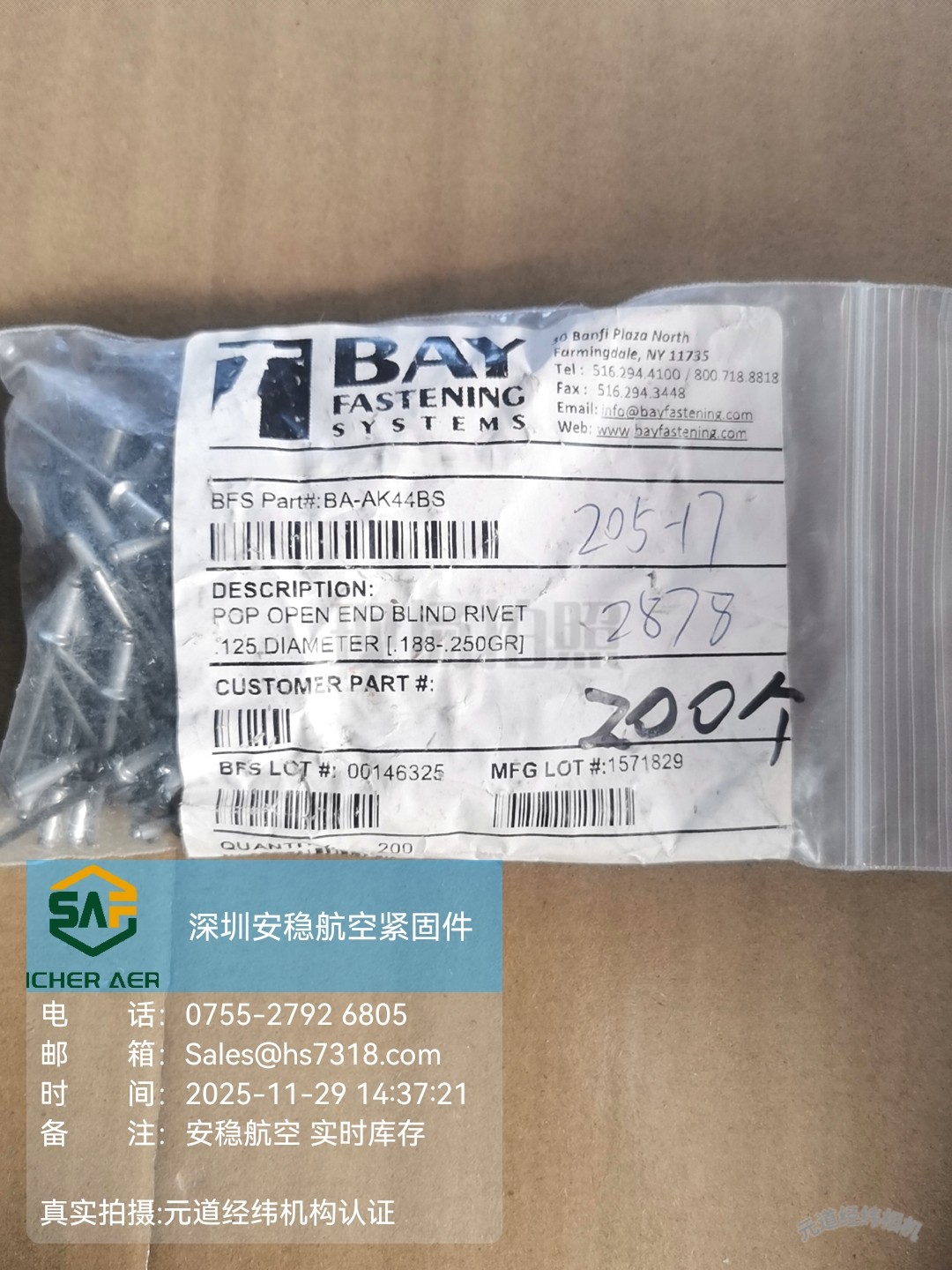 BAY FASTENING SYSTEMS BA-AK44BS 开口型抽芯铆钉|高效紧固,现货速达