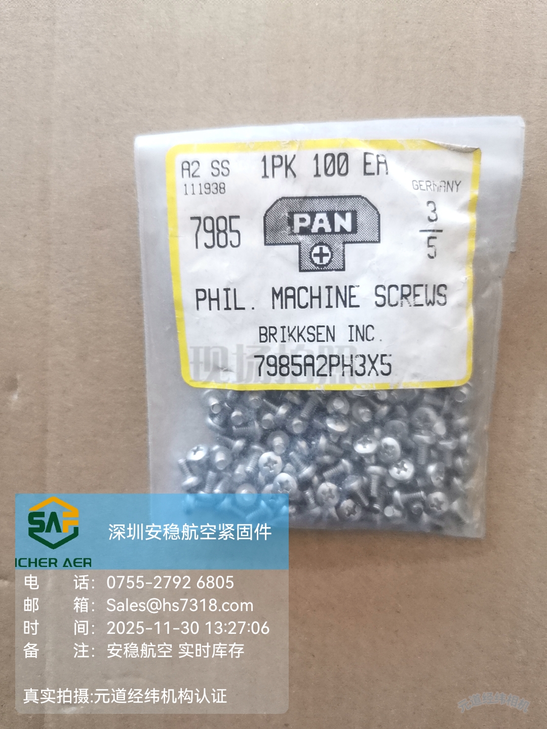 针对客户紧急采购与批量备货需求,Sicher Aero 备有 8500 EA 现货库存,现货充足,无需等待,可实现当日发货。作为专注工业零部件供应的专业服务商,Sicher Aero 严格遵循标准化仓储管理流程,所有 BRIKKSEN 螺钉均经过入库质检,确保每一件产品均为原厂正品,尺寸精准、性能达标,从源头保障客户采购品质。