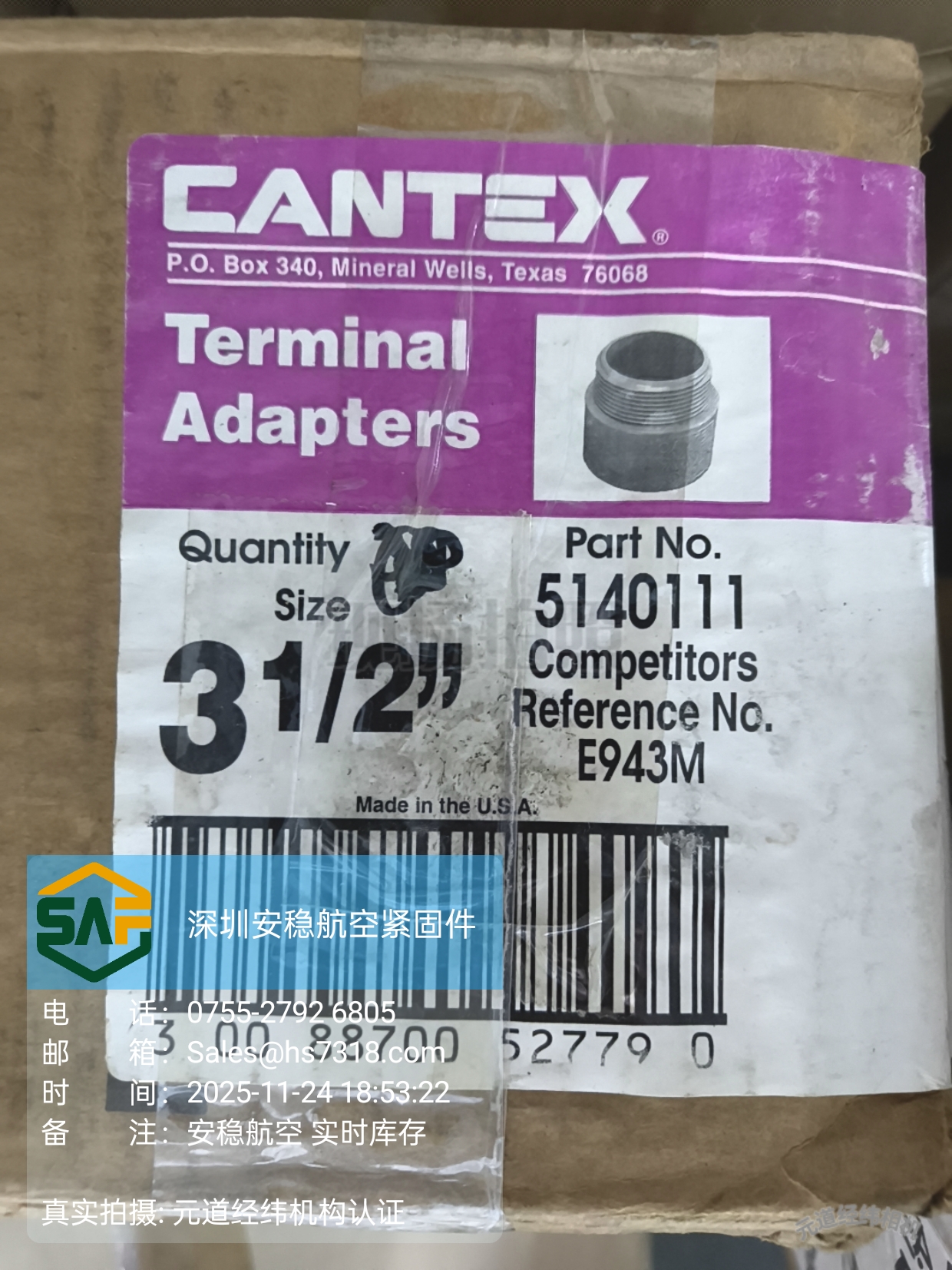 Sicher Aero 现储备200EA CANTEX 5140111 PVC 终端适配器现货,库存充足,下单即发,无需等待排产,轻松解决工程加急、设备替换的即时需求。无论是大型建筑工程的批量采购,还是小型维修改造的零星需求,都能快速响应,高效配送,为您的项目进度保驾护航。