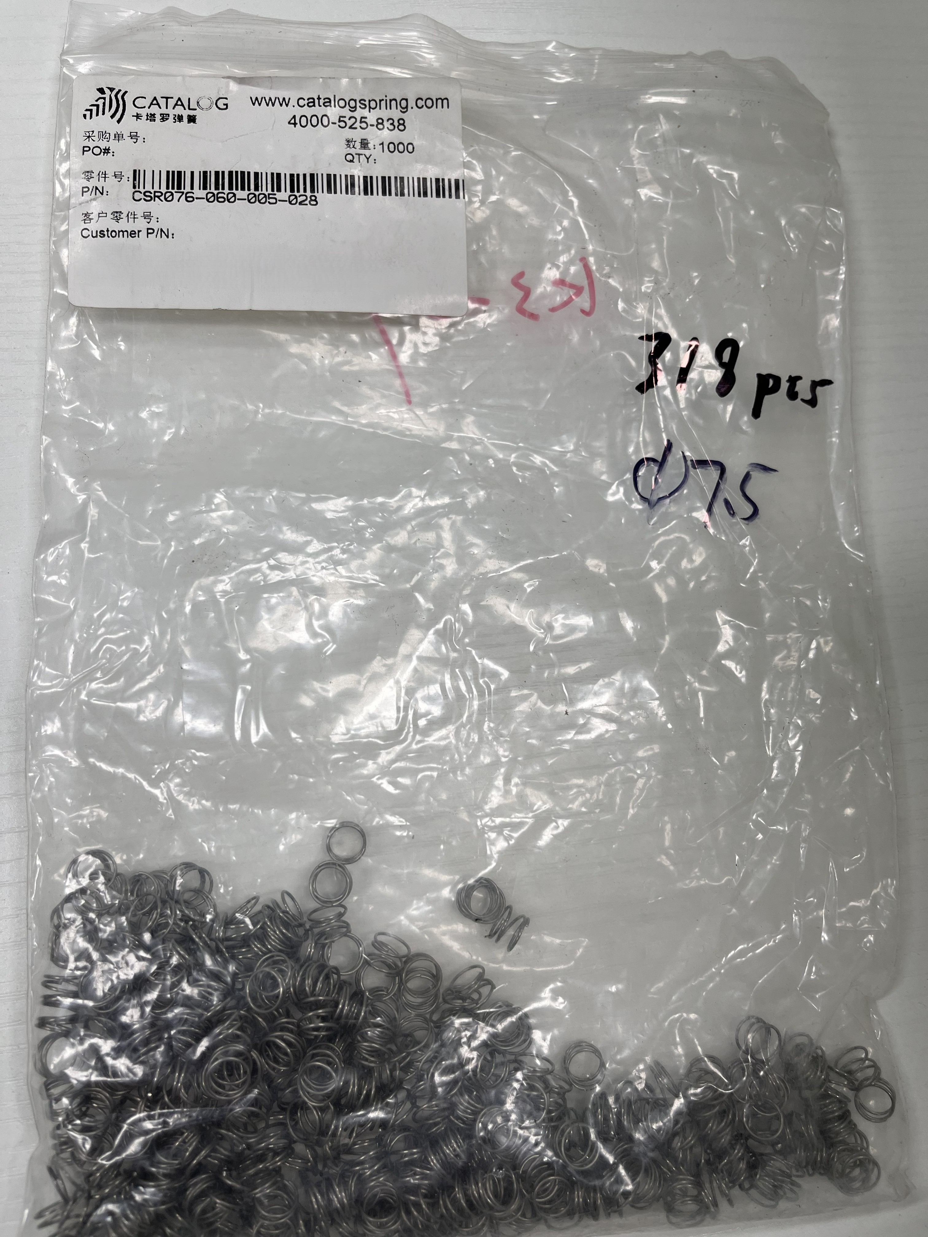 精密可靠,现货速达 — CatalogSpring CSR076-060-0025-028 圆柱压缩弹簧