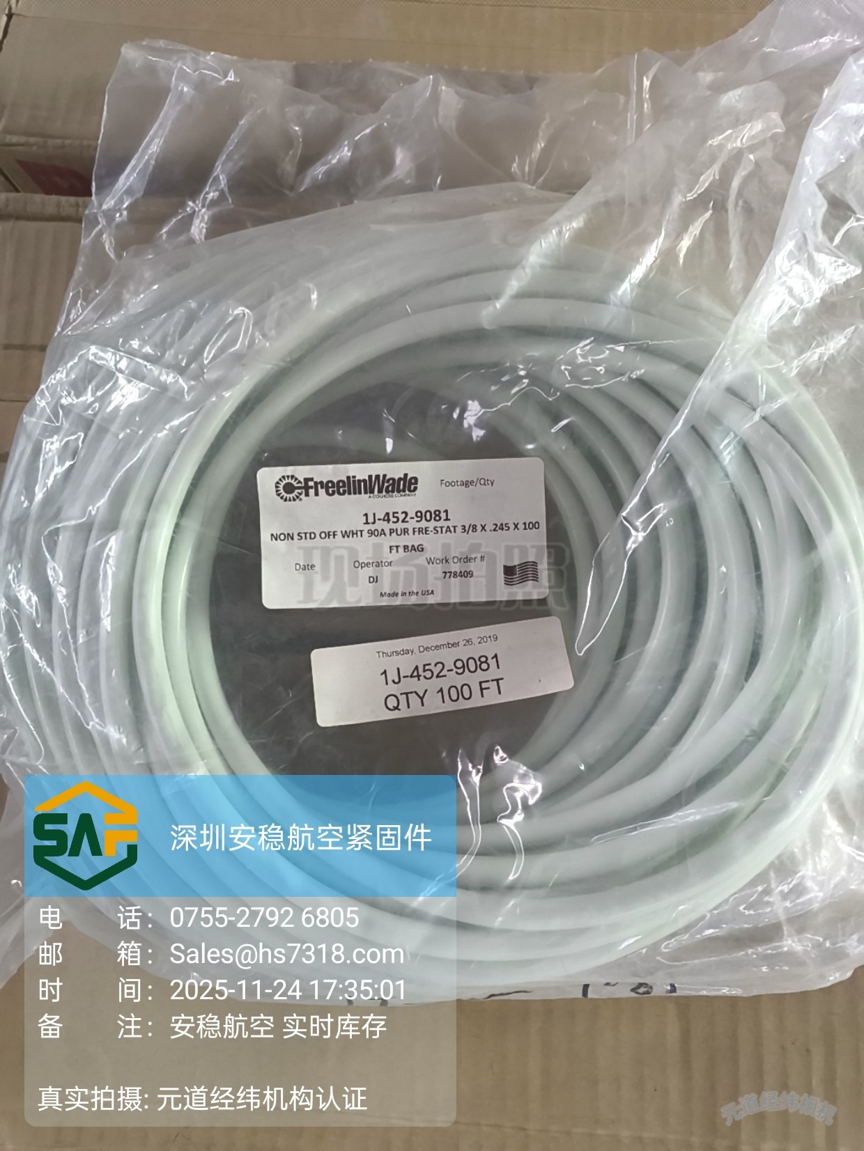 Freelin Wade 深耕聚氨酯管材领域数十年,拥有超 4000 种标准产品库存与强大的定制能力,其产品以精准的尺寸控制、超长的使用寿命成为全球工业领域的信赖之选。本次 Sicher Aero 供应的 Freelin Wade 1J-452-9081 为全新原厂正品,现货仅 1 卷,美国原厂工艺加持,品质有保障,适配工业设备配套、产线升级、设备维修等即时性采购需求,现货直发,高效交付!