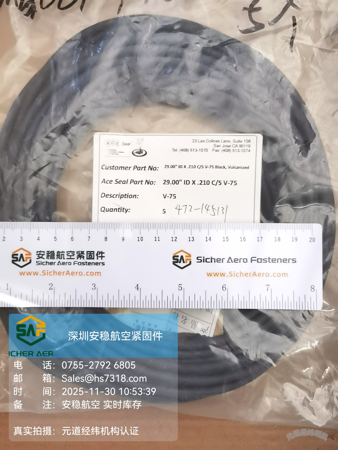 ACE Seal 29.00" ID × .210 C/S V‑75 O 形圈|超大尺寸氟胶密封,现货速供