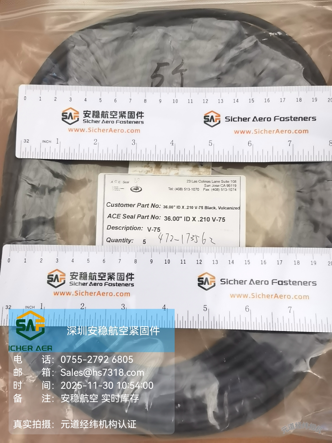 ACE Seal 36.00" ID × .210 V-75 O 型圈|超大尺寸氟胶密封,现货速达