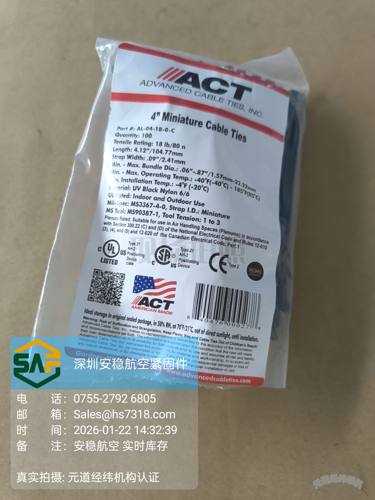 Advanced Cable Ties AL-04-18-0-C 美国原装微型自锁扎带|军工级品质,Sicher Aero 400EA现货速达