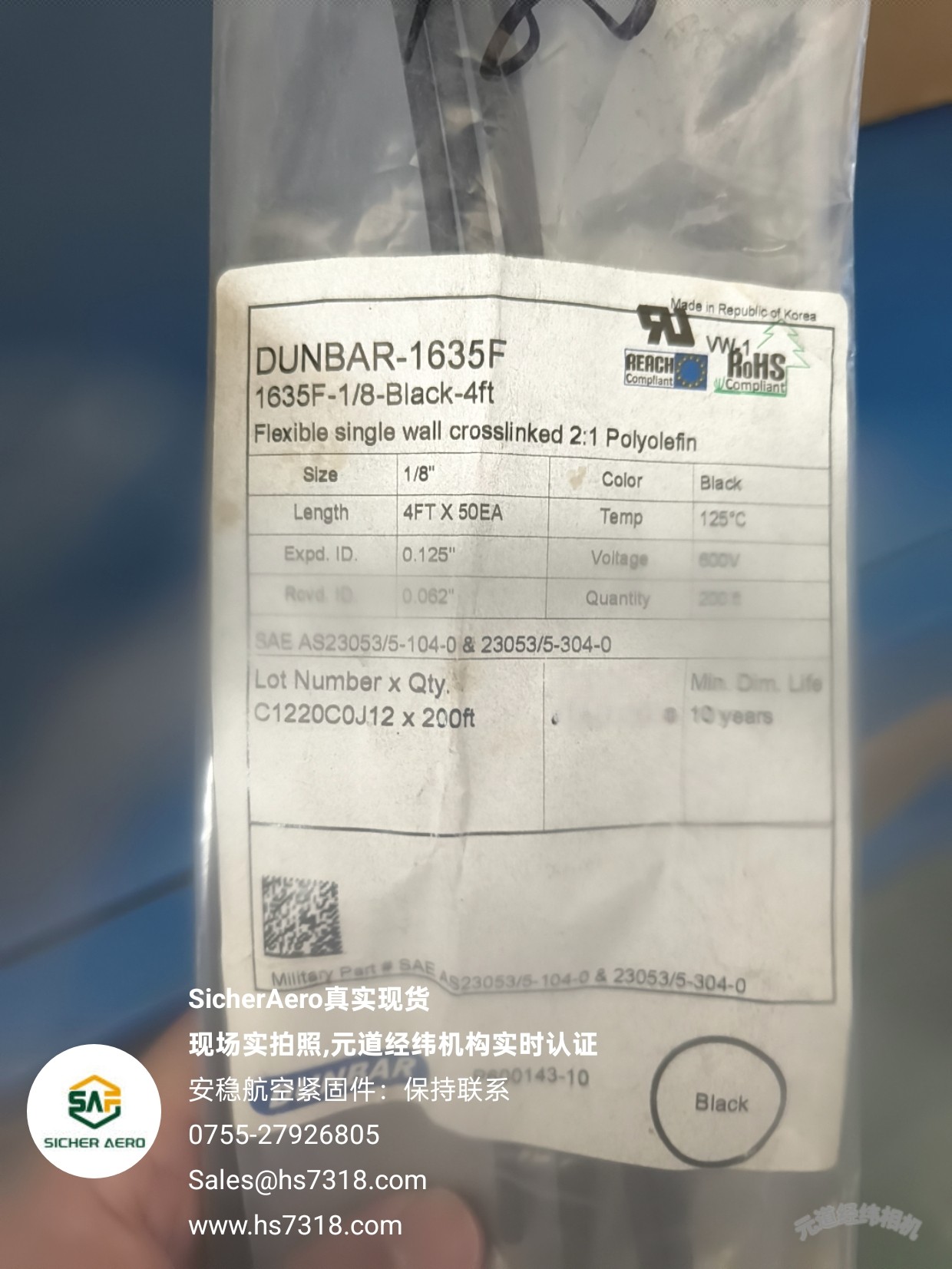 AEACH Compliant DUNBAR-1635F 柔性阻燃热缩管|现货速达