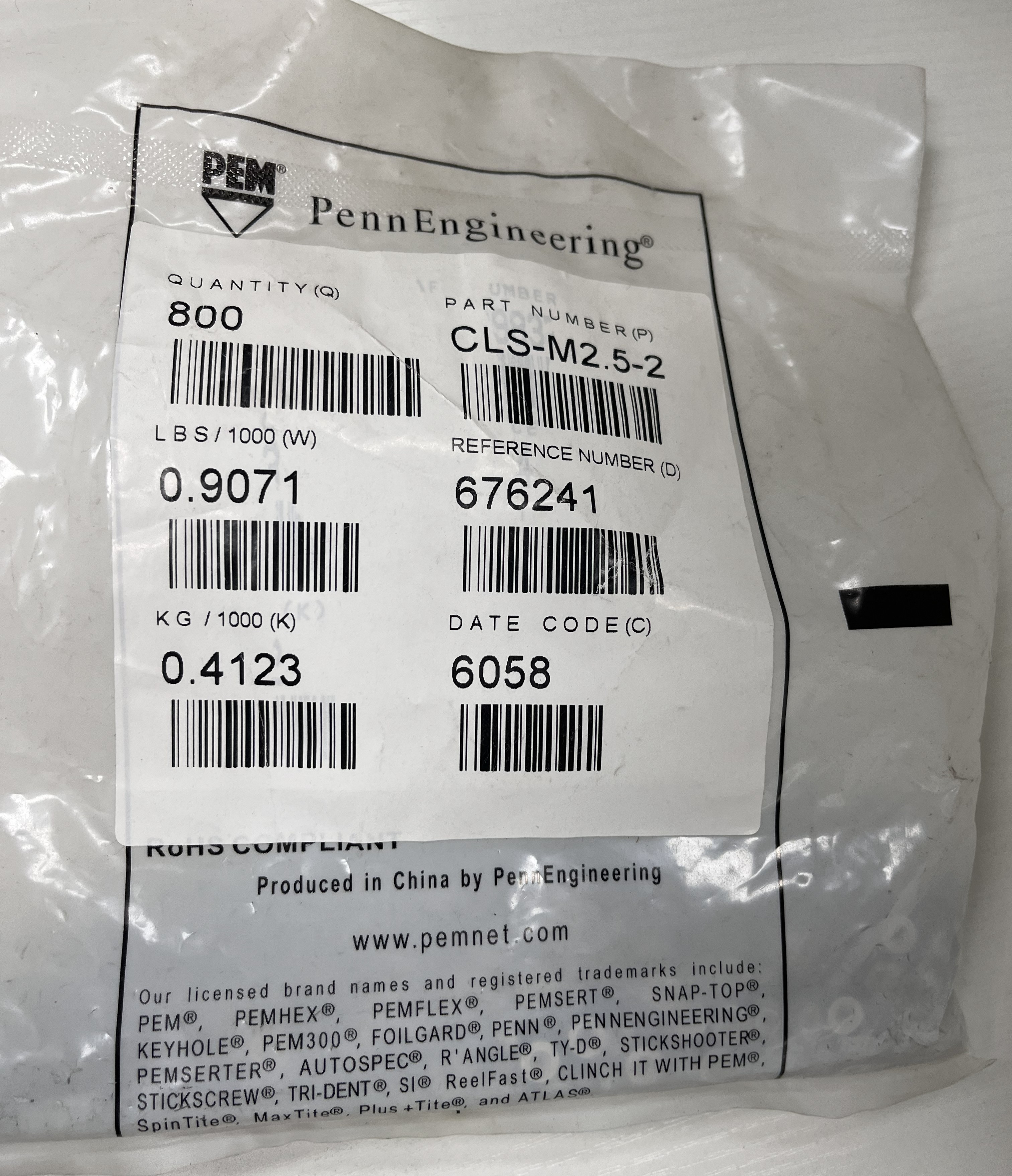 PEM CLS‑M2.5‑2 是 PennEngineering 原厂 CLS 系列自扣紧压铆螺母,采用不锈钢材质,适合安装在冷轧钢板、铝板等薄板结构中,广泛用于精密设备、机箱机柜、电子钣金等装配场景,压铆后连接稳定,适配常规工业装配使用。