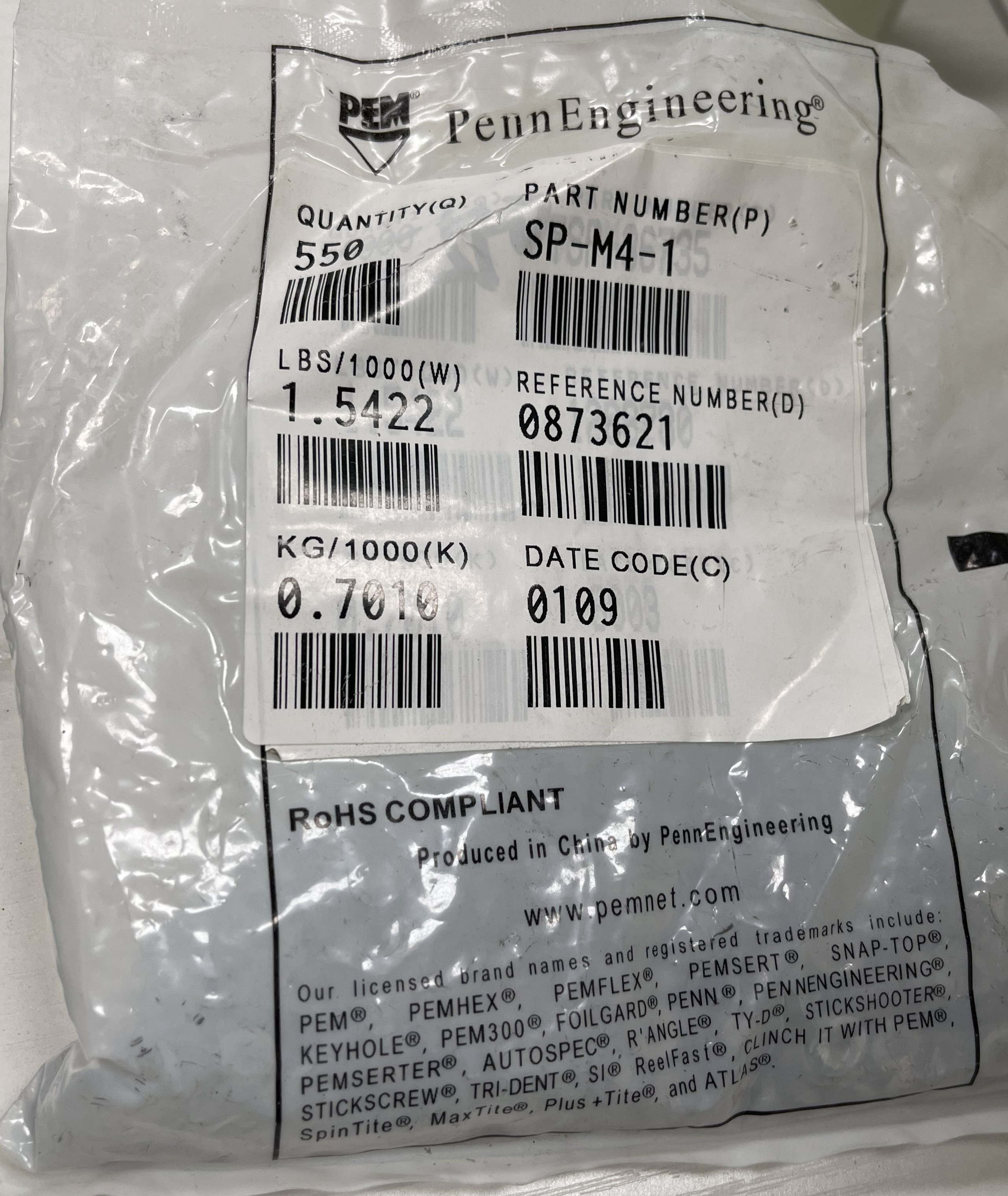 PEM SP-M4-1 是 PennEngineering 旗下 SP 系列压铆螺母,依托原厂标准工艺制造,适用于不锈钢薄板、钣金壳体、工业设备及精密器械等装配场景,采用压铆安装形式,适配常规钣金加工工况。