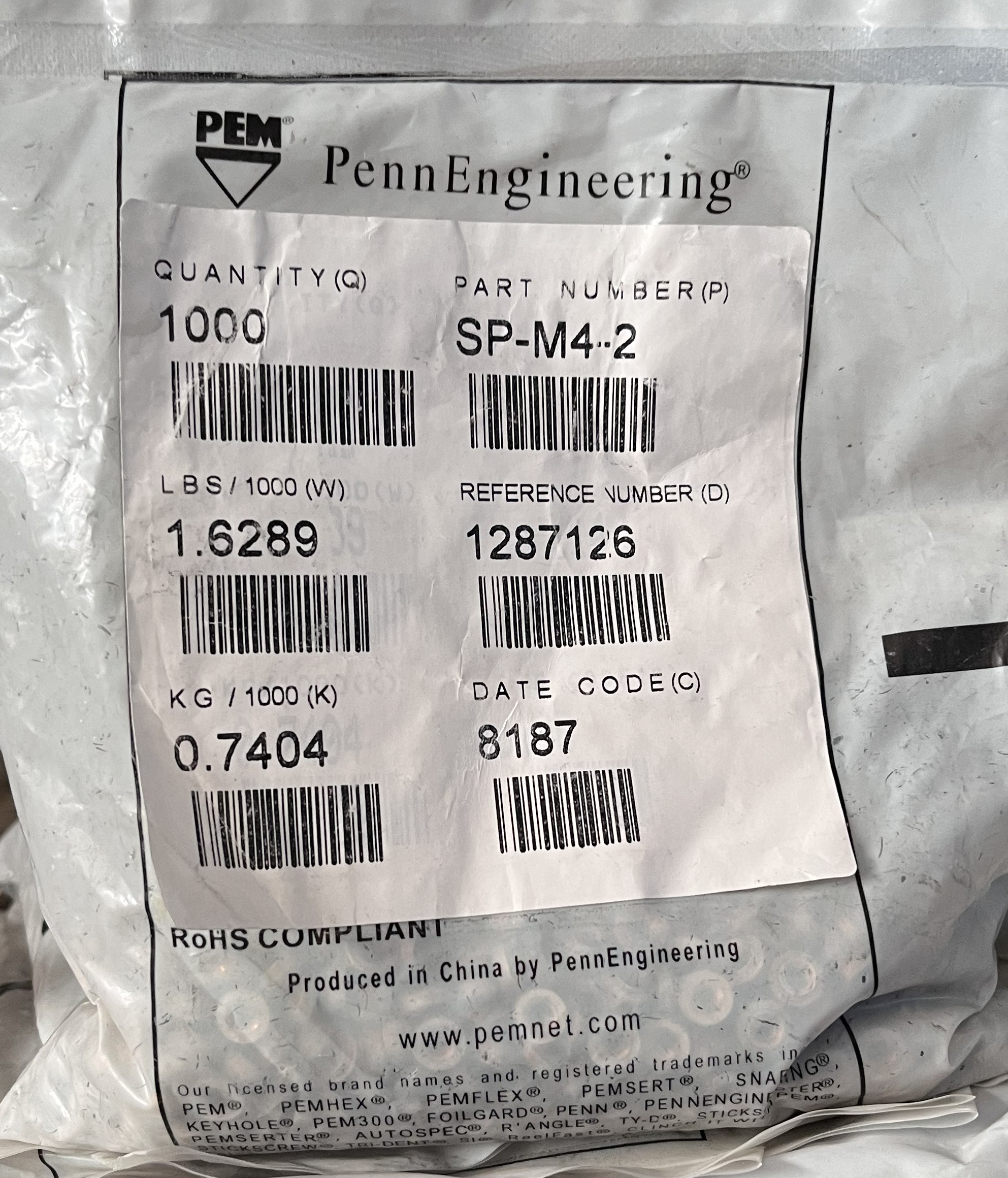 PEM SP-M4-2 为 SP 系列公制自扣紧压铆螺母,采用适配高硬度板材的特殊材质制作,依靠压铆方式与薄板结合,可为钣金结构提供稳定的内螺纹连接,多用于工业设备、精密钣金等装配场景。